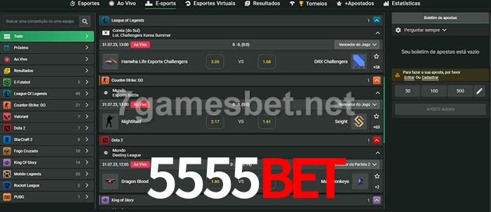 O 5555Bet oferece uma grande seleção de opções de apostas em e-sports com probabilidades competitivas